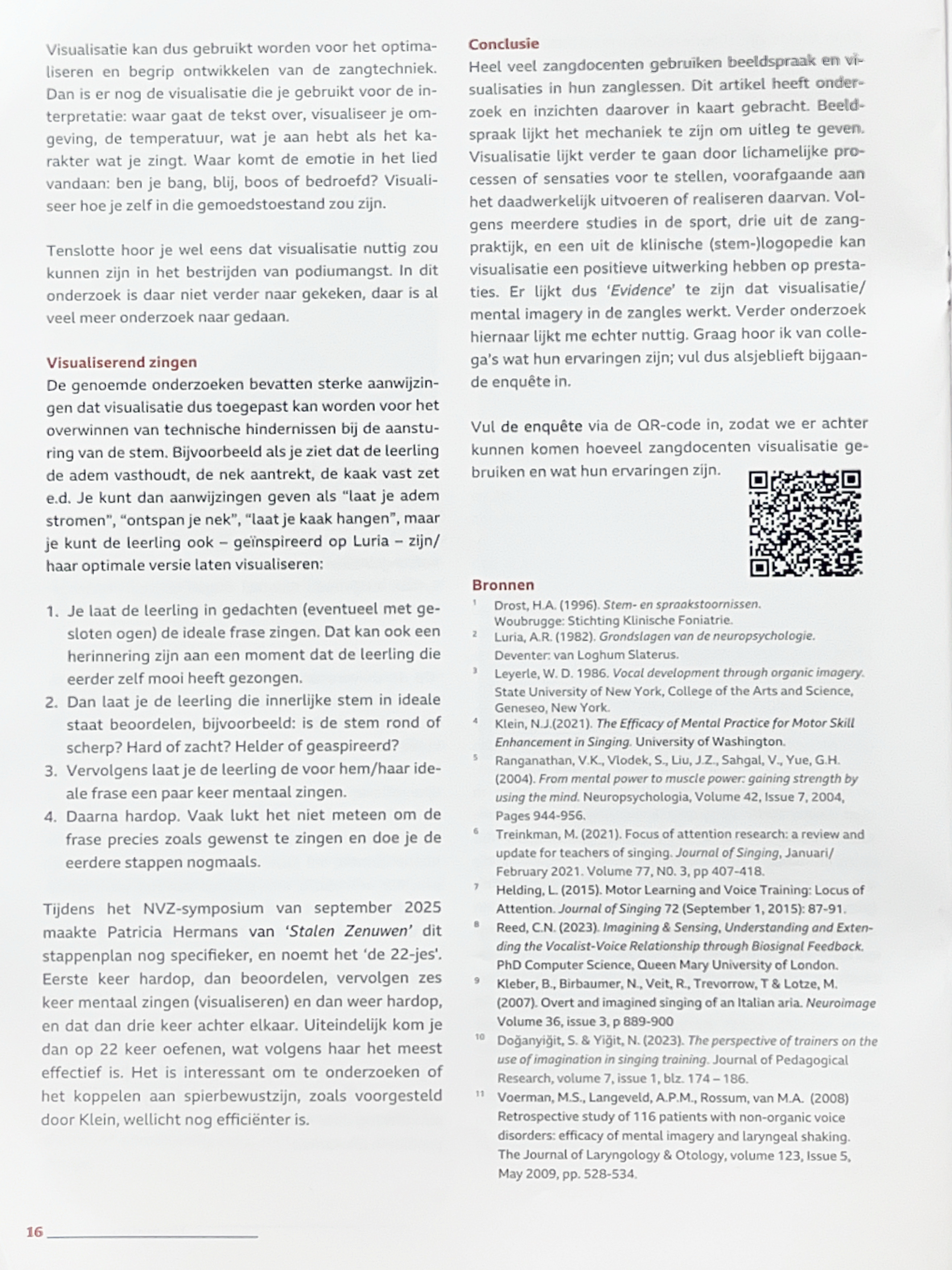 Graag hoor ik via de enquête met de QRcode in het artikel (of klik hier) of, hoe en wanneer jullie visualisatie toepassen en wat daar dan de uitkomsten van zijn.